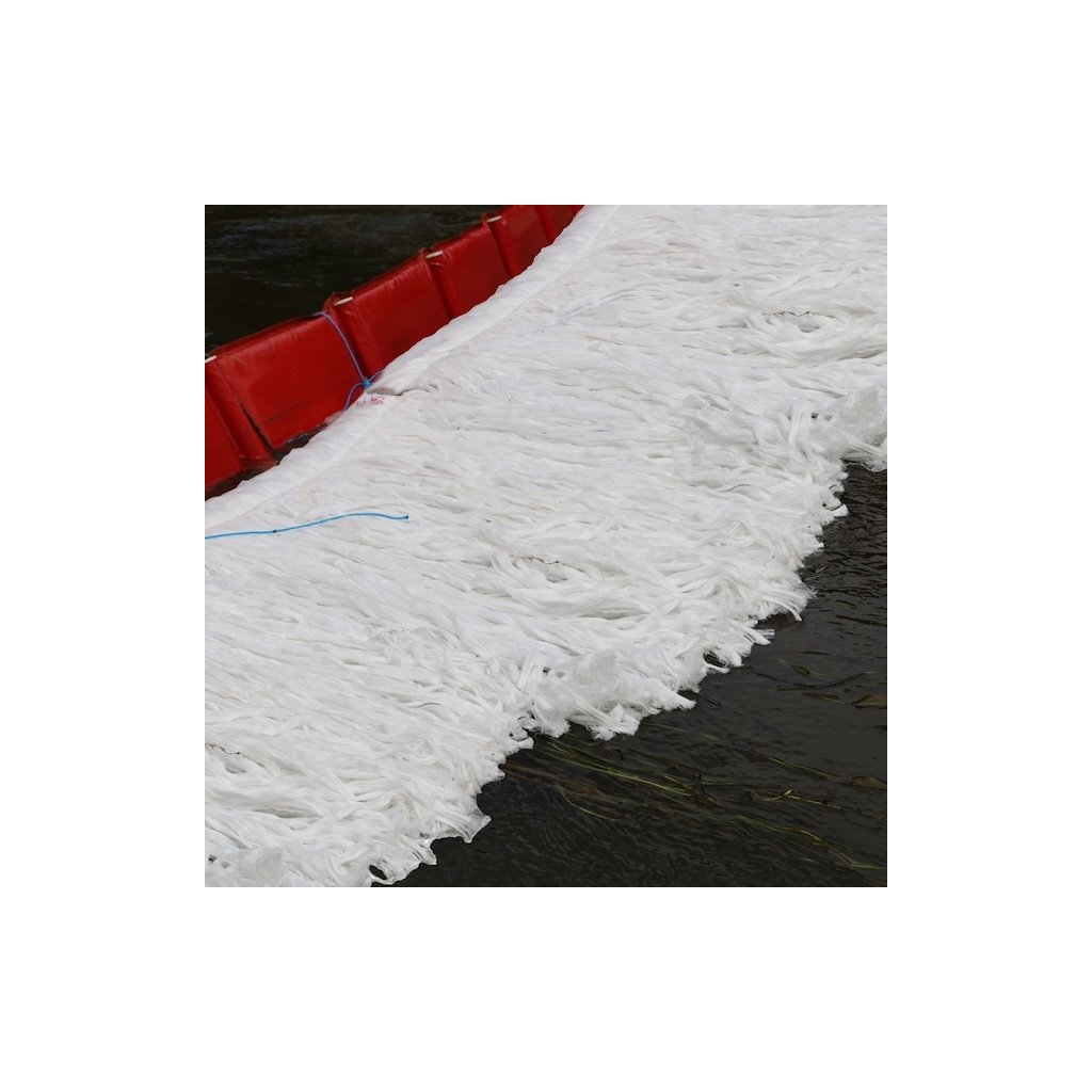 - Pomocí upevňovacího lana natáhněte lapač napříč tokem. Ropná látka se rychle nasává do vláken až do úplného nasycení sorpční kapacity (souvislé tmavé zbarvení textilie).