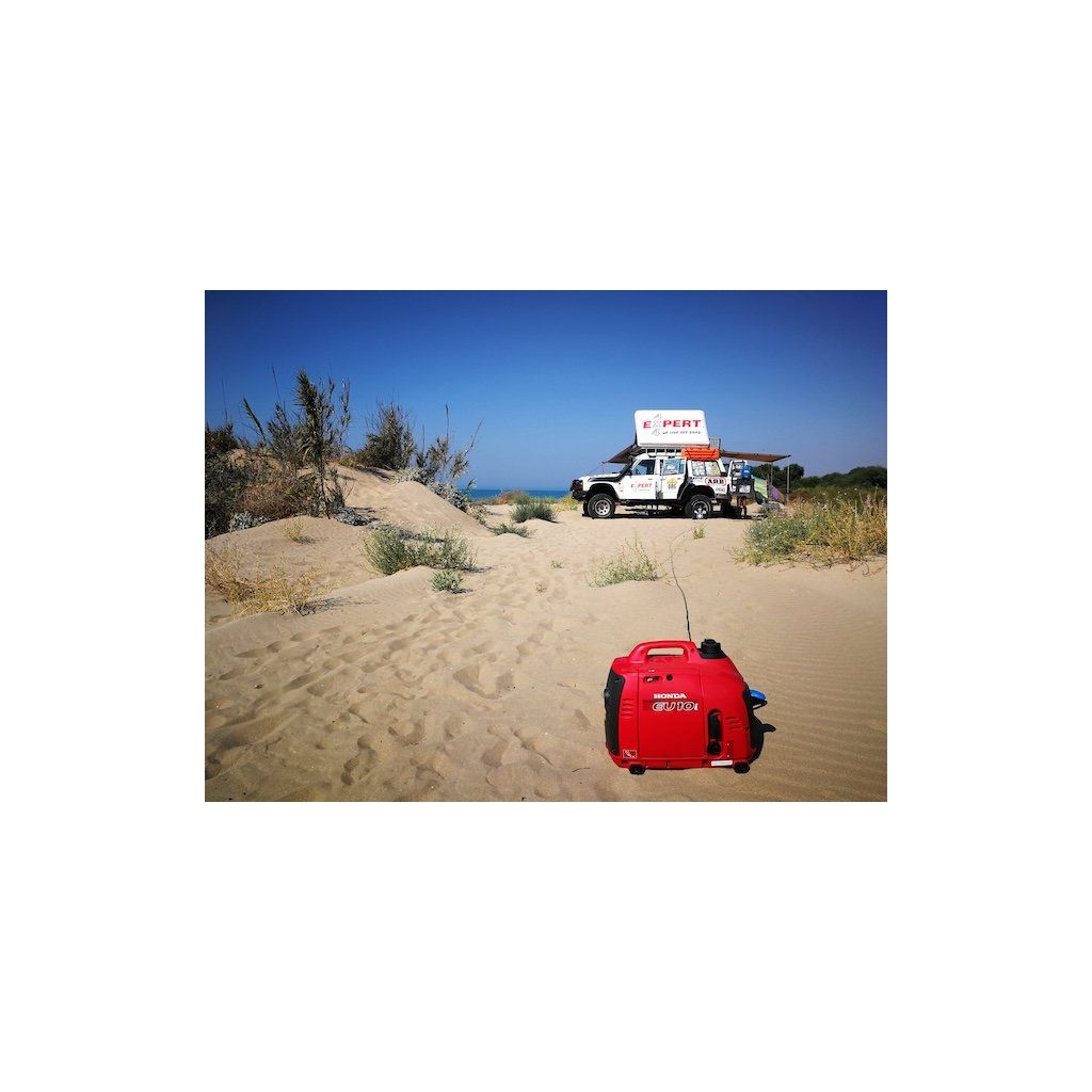 Lehká kufříková elektrocentrála EU 10: model, jednofázové elektrocentrály s invertorem. Patentovaná technologie invertoru umožnila Hondě vyrobit kompaktní a lehký generátor malých rozměrů, ale vysokého výkonu s vyladěnou a stabilní křivkou průběhu výstupního napětí pomocí přesné elektroniky. Výkonný alternátor pohání miničtyřtaktní motor řady GXH 50 s lehkým startem a to vše úhledně "zabaleno" do líbivého designu odhlučněné kapotáže.