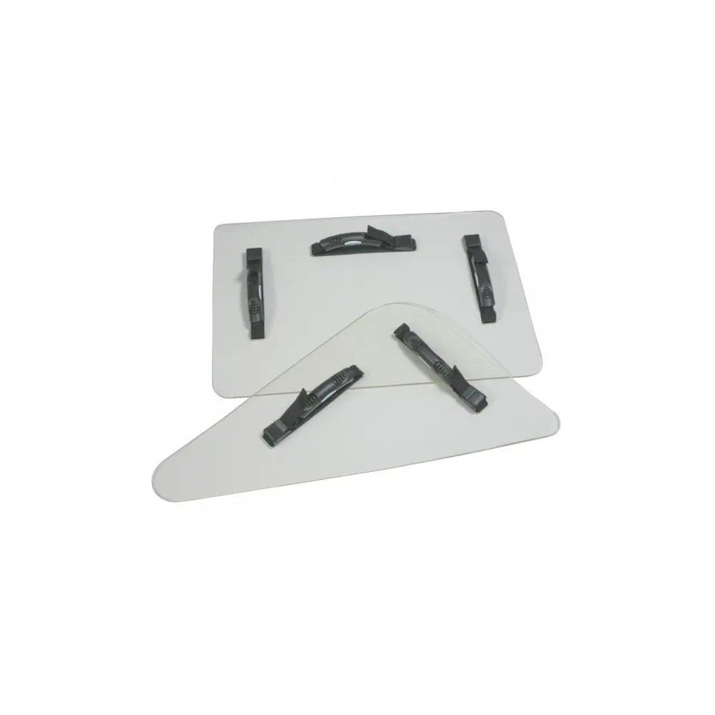 Sada obsahuje obdélníkový štít a trojúhelníkový štít. Oba štíty jsou vybaveny nastavitelnými pryžovými madly a díky pružnému materiálu je lze snadno přizpůsobit podmínkám na místě. Další výhodou je vysoce transparentní měkčené PVC, protože světelné podmínky a viditelnost nejsou omezeny.