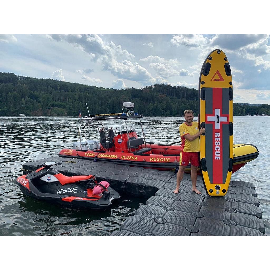 Paddleboard vyvinutý ve spolupráci s profesionály z řad IZS. Tato inovovaná verze přináší vylepšení v podobě 10 nerezových D-kroužků na horní straně boardu, které umožňují variabilnější upevnění materiálu, lan nebo vybavení.Vhodný jak na rychle tekoucí vody, tak na záchranu z ledu. Dvouplášťová konstrukce ve spojení s 15 cm tloušťkou zajišťuje stabilitu při každém zásahu. Do přední části možnost vpletení lana pro snadné zachycení při zásahu pod jezem. Polstrované úchyty po obvodu pro snadný transport potřebného vybavení nebo osob. Napouštěcí ventil v zadní části umožňující rychlé nafouknutí. Paddleboard je vybaven přetlakovým ventilem, který automaticky odpouští tlak nad 18 PSI.