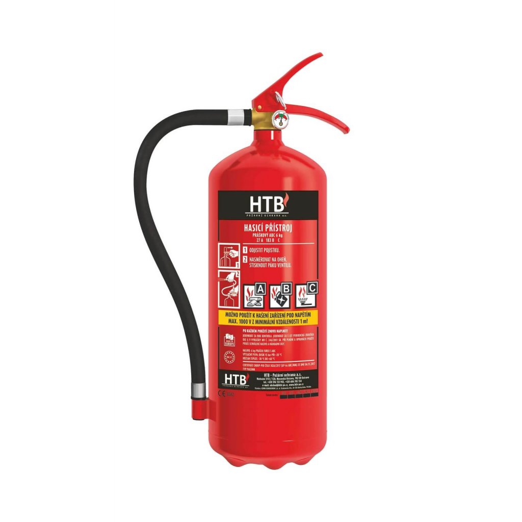 Základní specifikace hasicího přístroje práškového HTB P6F/MM - 6 kg