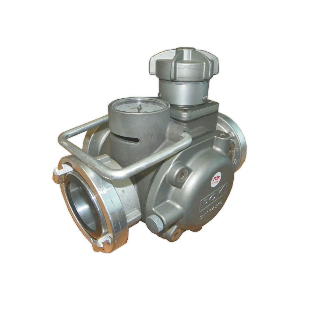 - přetlakový ventil POK pro zásahovou činnost, kdy chrání hadicové vedení při vzniku tlakových rázů a omezuje horní hranici tlaku v nastavené úrovni