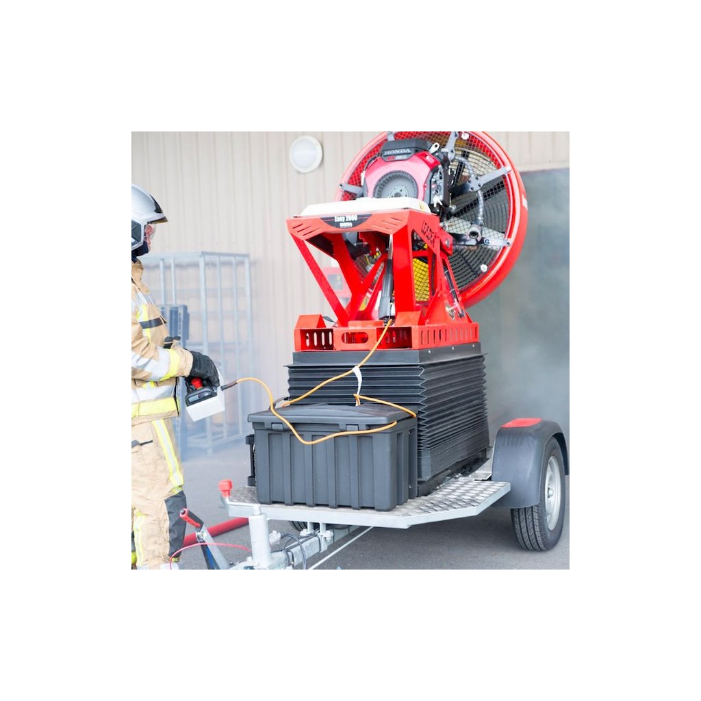 - ventilátor je v základním provedení vybaven mlžícím zařízením, které umožňuje rychlé ochlazení prostor zásahu