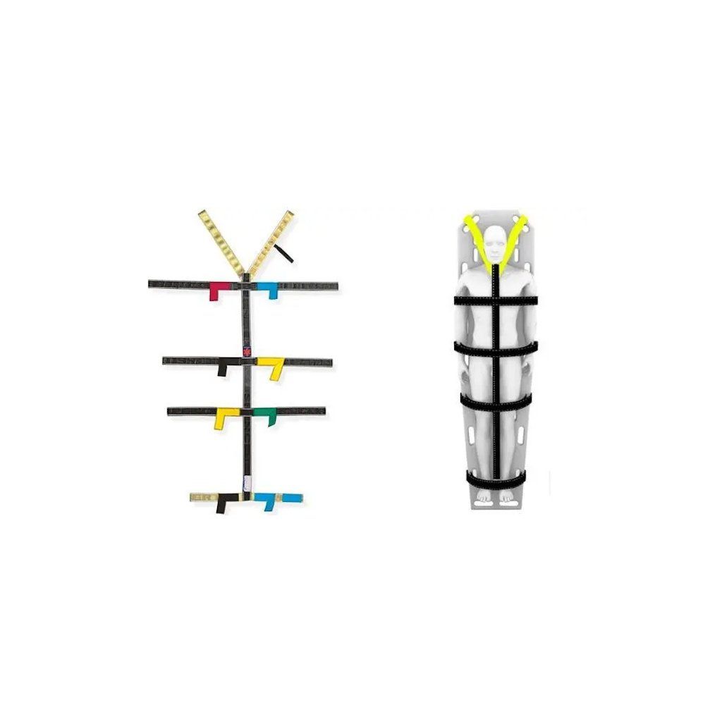 Vzhledem k úhlopříčným pásům navázaným na centrální pás umožňuje imobilizaci různých váhových kategorií. Vyrobeno z 50mm polypropylenové pásky, která před šitím prochází špeciálny procedurou, která ji změkčí.