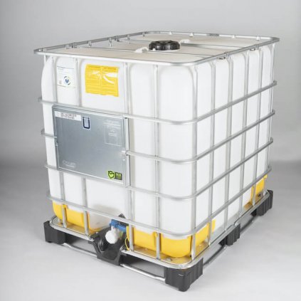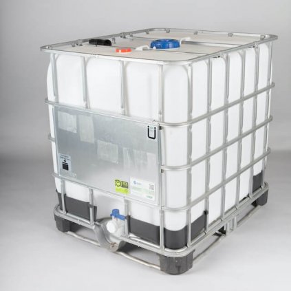 IBC kontajnery s objemom až 1000 litrov sú zasadené v kovovej konštrukcii. Ide o najjednoduchší a ekonomicky najvýhodnejší obal na skladovanie, hromadnú manipuláciu a prevoz akýchkoľvek objemných kvapalných a polotuhých látok, pást alebo sypkých látok.