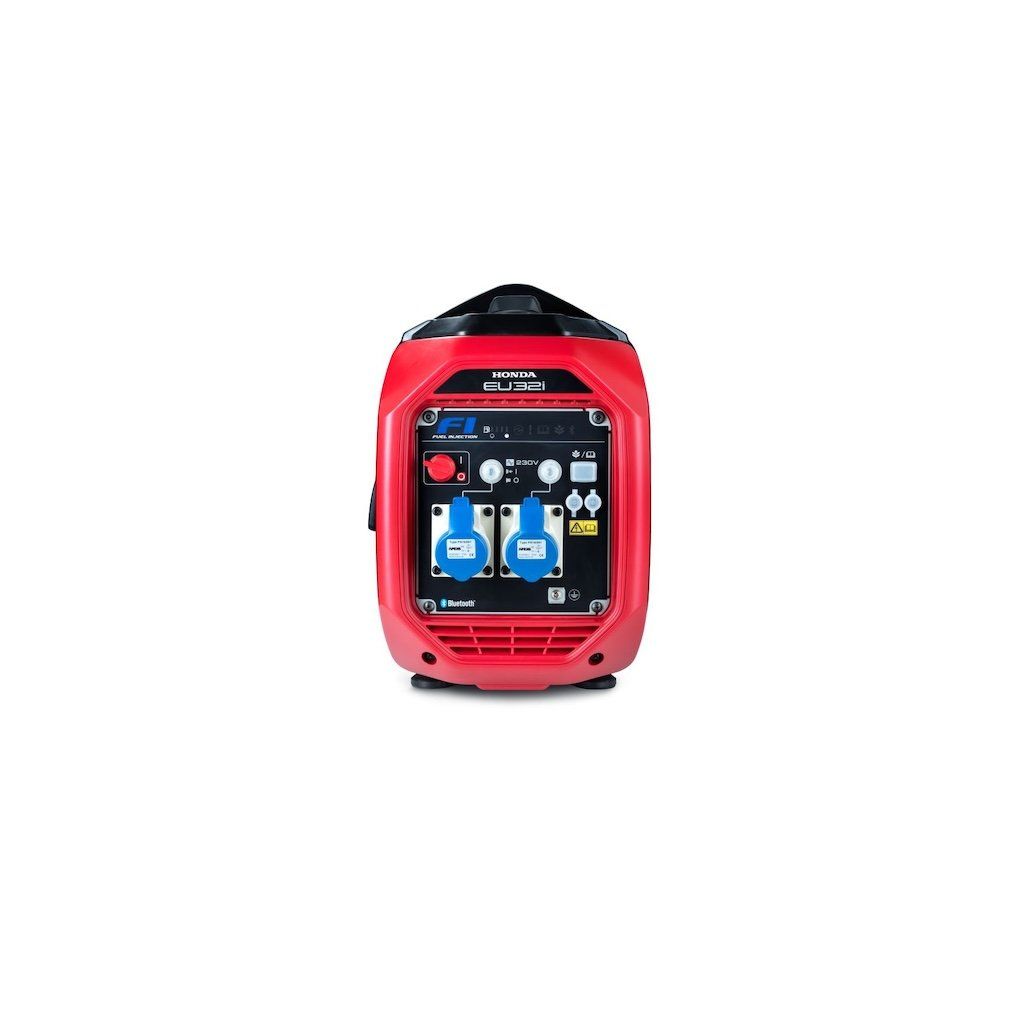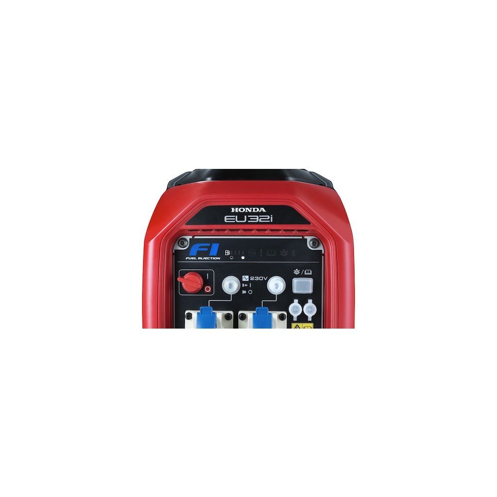 Spojení pomocí Bluetooth s chytrým telefonem umožňuje vzdálené sledování stavu elektrocentrály pomocí aplikace, stejně jako vypnutí motoru. Na mobilním telefonu tak uživatel může sledovat např. zbývající množství paliva, zbývající provozní dobu, poskytovaný výkon, informace o chybách a údržbě a pod. Zcela nový motor GX130 vychází ze zkušeností konstrukce motorů používaných v malých motocyklech Honda. Jedná se o představitele nejmodernějších benzínových motorů, splňujících přísná emisní a hluková opatření. Konstrukce motoru je svým pojetím ojedinělá v oblasti strojů a tvoří naprostou špičku. Jednoválcový motor Honda GX130 s rozvodem OHC je opatřen elektronickým vstřikováním paliva, třícestným katalyzátorem s lambda sondou a použitím zcela nových materiálů je nejlehčím, nejčistším a nejúspornějším ve své kategorii. EU32i bez problémů snáší i benzíny s vyšším podílem ethanolu pod označením E10. Elektrocentrála spĺňa veškeré nároky na elektrickou bezpečnost a je opatřena ochrannými prvky jako je např. ochrana motoru proti úniku oleje nebo alternátoru proti přetížení. V případě přetížení elektrocentrály se aktivuje červená výstražná kontrolka přetížení na ovládacím panelu a automaticky dojde k odpojení elektrického výstupu, přičemž motor neustále běží. Stačí odpojit spotřebič, vypnout motor a po několika vteřinách opět motor nastartovat. Dojde k "resetu" řídící jednotky a vše je opět v pořádku. Spotřebič, který elektrocentrálu přetížil už nepoužívejte a použijte spotřebič s příkonem, odpovídajícím výkonu elektrocentrály. Lze však pomocí speciálního kabelu propojit dvě identické elektrocentrály EU32i a zdvojnásobit tak možný napájecí výkon. Konstrukce elektrocentrály je dostatečně robustní a pevná, nekroutí se a spolehlivě tlumí působení vibrací od soustrojí na podklad. Snižuje se tak hlučnost elektrocentrály a práce je potom příjemnější. Údržba elektrocentrály je zcela nenáročná a spočívá v základní údržbě benzínového motoru.