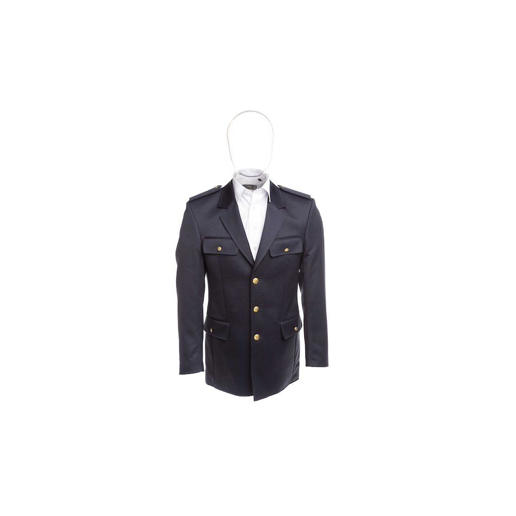 | Kapsy: | 2 na hrudi s patkami a zlatými knoflíčky, 2 na bocích v úrovni dlaní s ozdobnými patkami, vnitřní kapsy |
