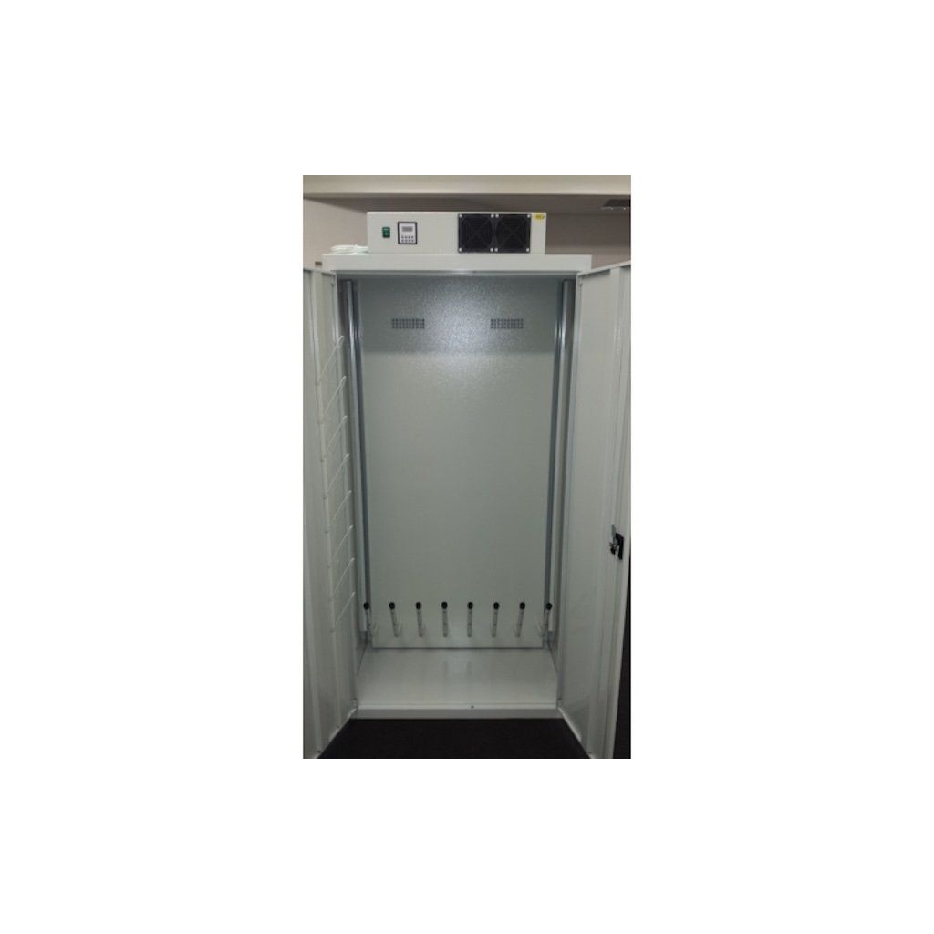 Součástí vysoušecí skříně jsou závěsné háky na obuv, závěsné háčky na rukavice a tyč pro zavěšení kabátů a bund. Skříň je určena pro vysoušení například pracovní obuvi, rukavic a plášťů, sportovní obuvi, rukavic a dresů, atd.