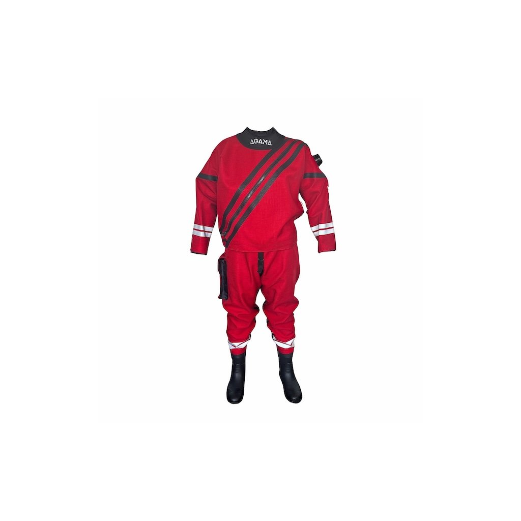 Oblek AGAMA-WORK je vodotěsný pracovní oblek, vhodný pro pracovní zásahy hasičů, policie, leteckých záchranářů a vodní záchranné služby v drsných klimatických a jiných podmínkách.
