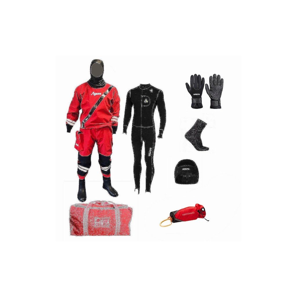 Set Agama RESCUE COMFORT Součást balení: suchý trilaminátový oblek, podoblek, neoprenové rukavice, velká transportní taška, házečka do vody, ponožky, čepice