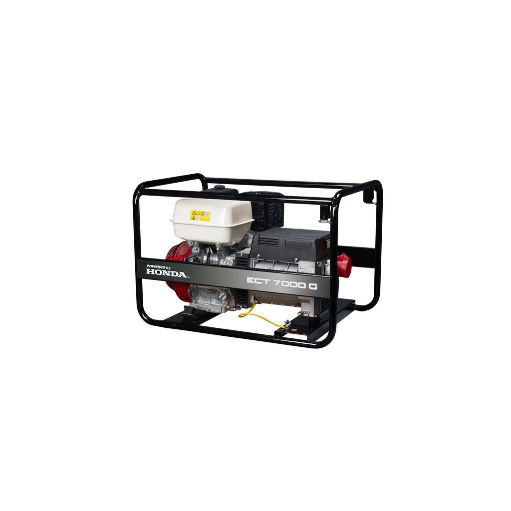 Elektrocentrála ECT 7000G: model velké, třífázové elektrocentrály s regulací výstupu indukčním trafem. Výkonný a vysoce odolný alternátor pohání spolehlivý profesionální motor řady GX s dlouhou životností a to vše ukotveno v pevném a odolném ocelovém rámu.