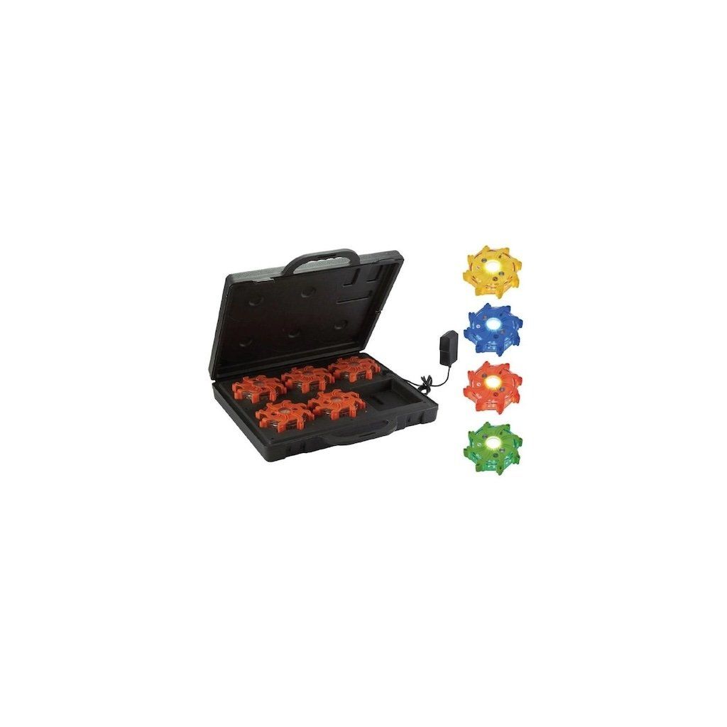 Výstražné LED blikače NIGHTSEARCHER PULSAR PRO Obsah balení: přenosný kufr s nabíjecími základnami pro 5 ks blikačů+adaptéry 12/230V